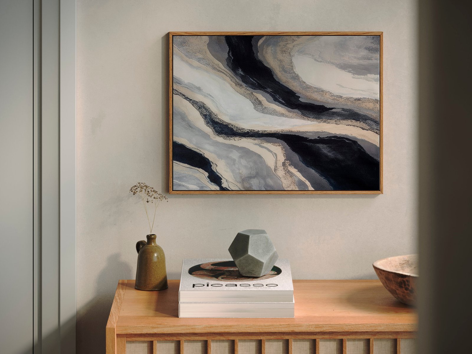 Premium Frames:  Choose from an array of frame colors including Elegant Black, Stunning Gold, Pristine White, and Natural Oak to seamlessly integrate with your decor preferences. Each frame serves as a tasteful accent, complementing the beauty of the curated designs by our favorite artists.