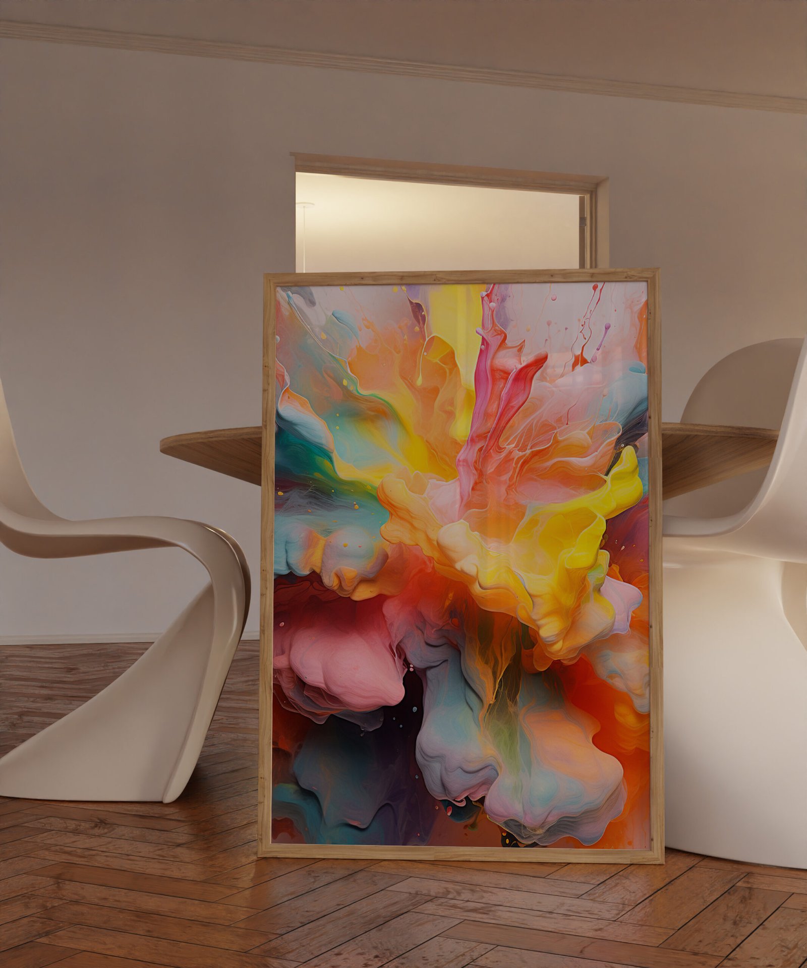Our Color Burst wall art is a mesmerizing symphony of vibrant energy, where bright, vivid paint ripples converge to create a visual masterpiece that captures the essence of dynamic motion and color. This captivating piece is a celebration of fluidity and chromatic expression that breathes life into your space.