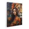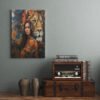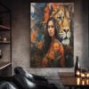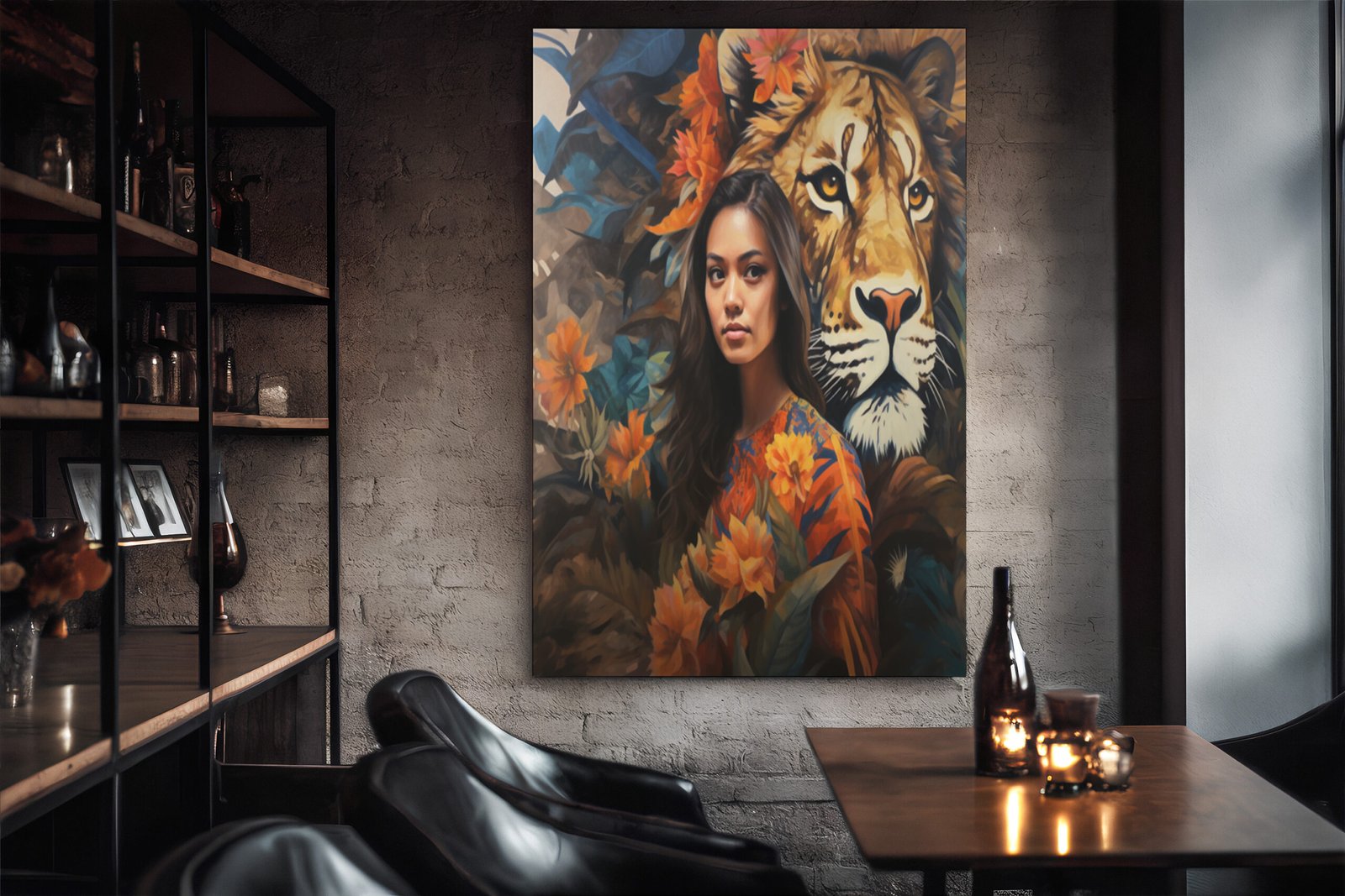 Unleash the power of Lion Courage in your home. This bold, fantastical piece portrays a woman’s fearless connection with a majestic lion, set against a vibrant, abstract background. It’s a powerful symbol of strength and regality, perfect for an office or living room.