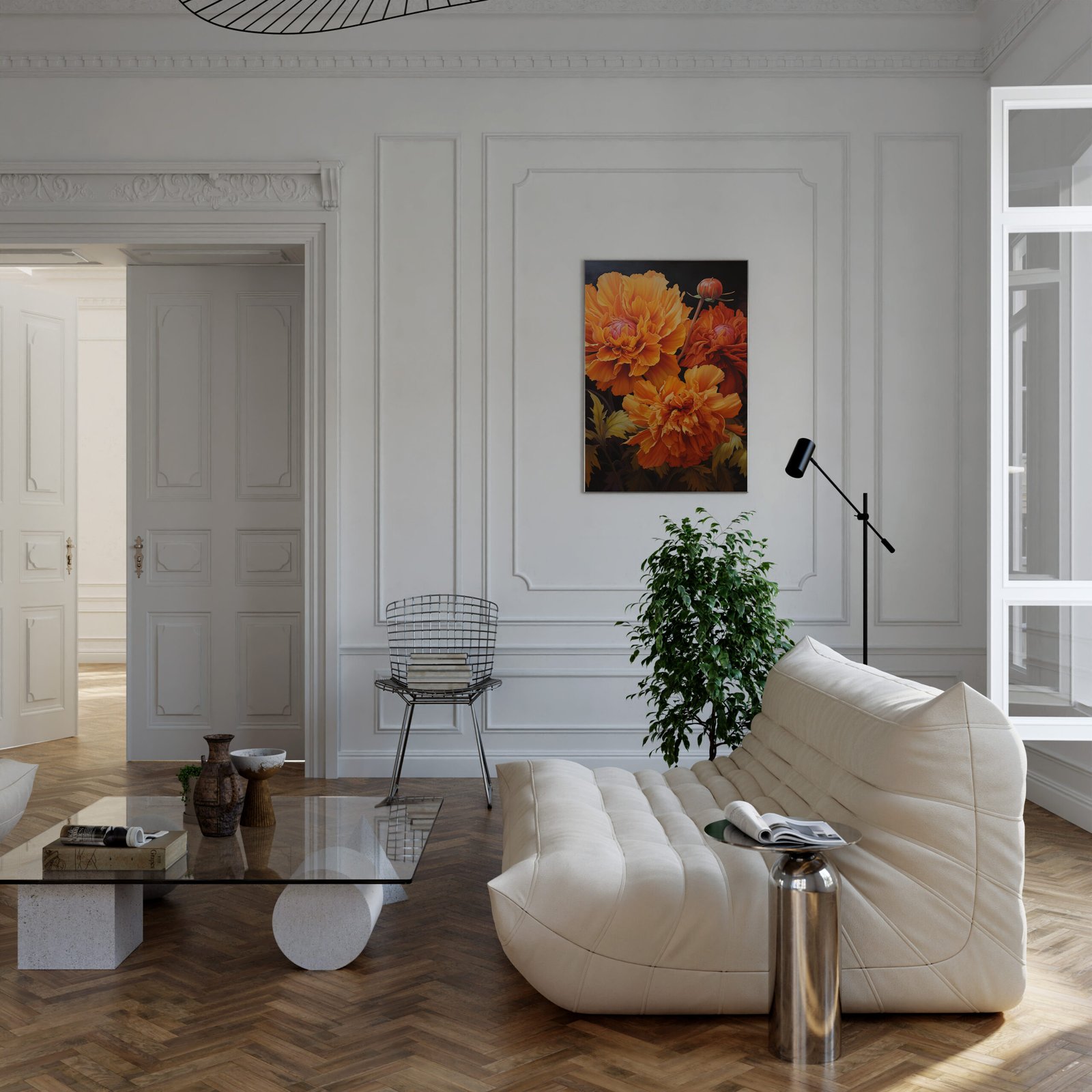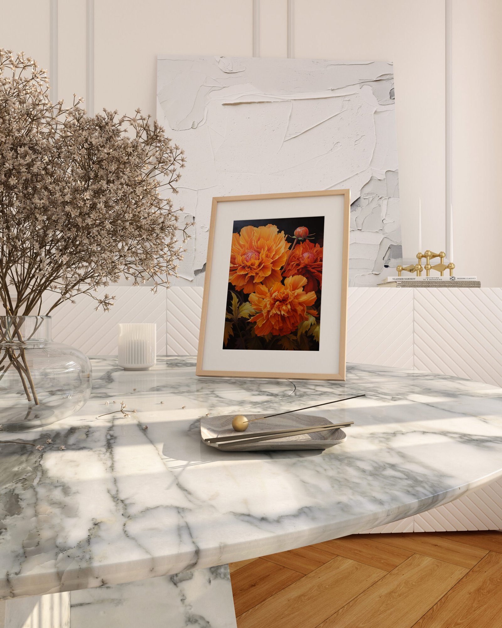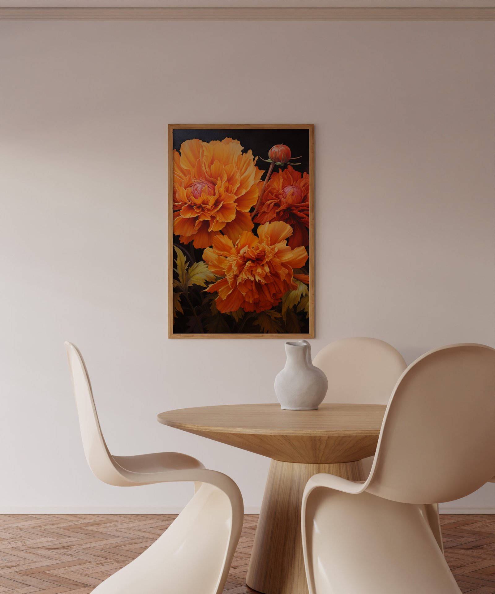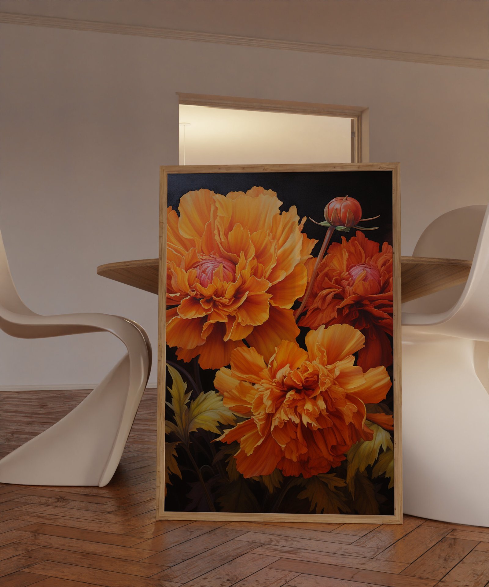 Celebrate the love affair with Marigold Love Wall Art. This piece is a testament to the passion and devotion inspired by marigolds. Delicate strokes and warm tones create an atmosphere of love and tenderness, turning your walls into a canvas of heartfelt emotion. Let Marigold Love Wall Art be a visual expression of the affection that blooms in your heart.