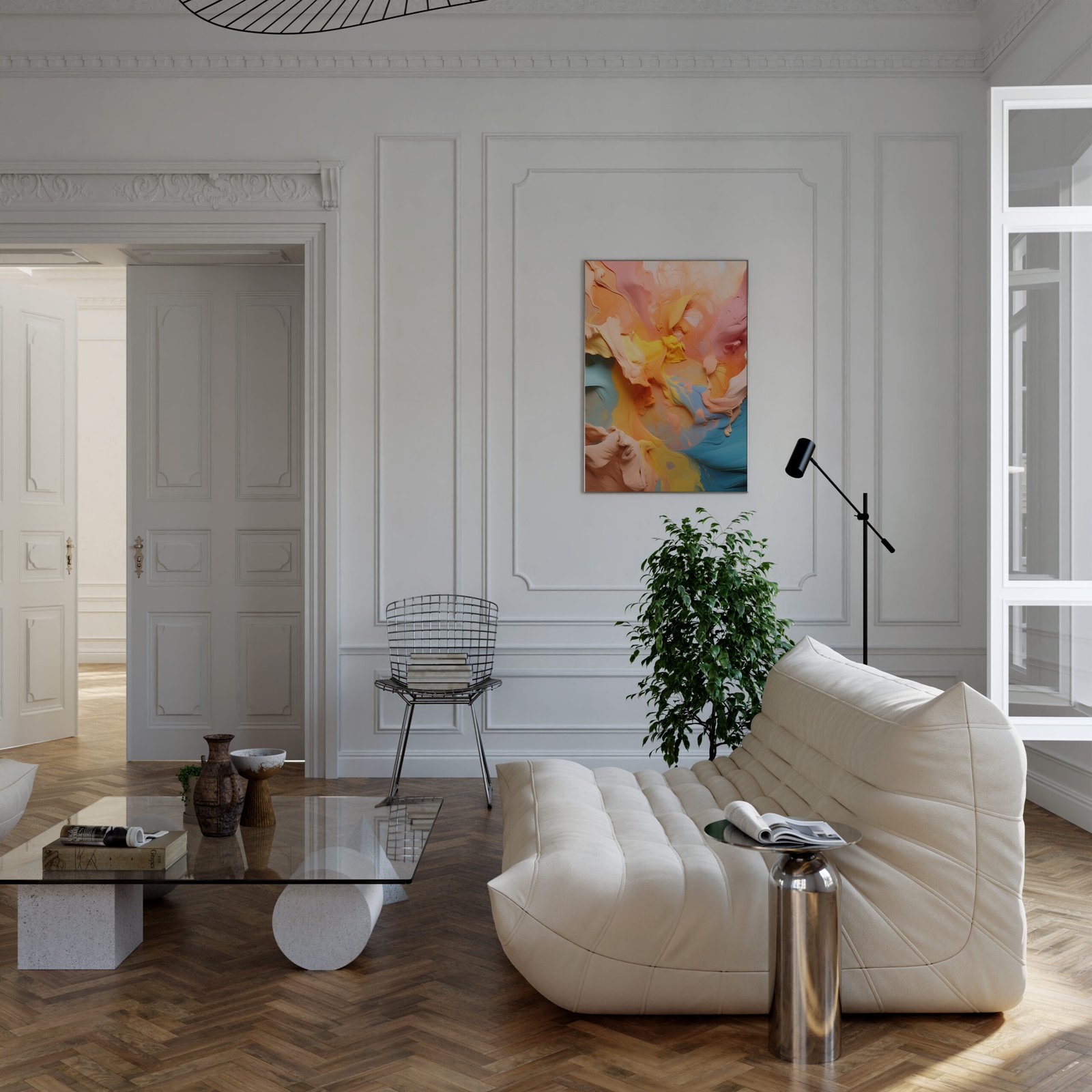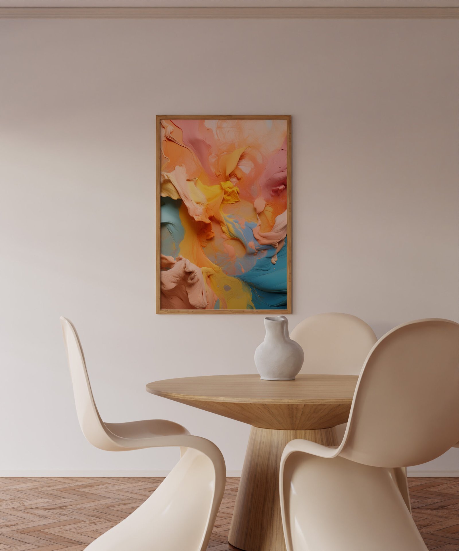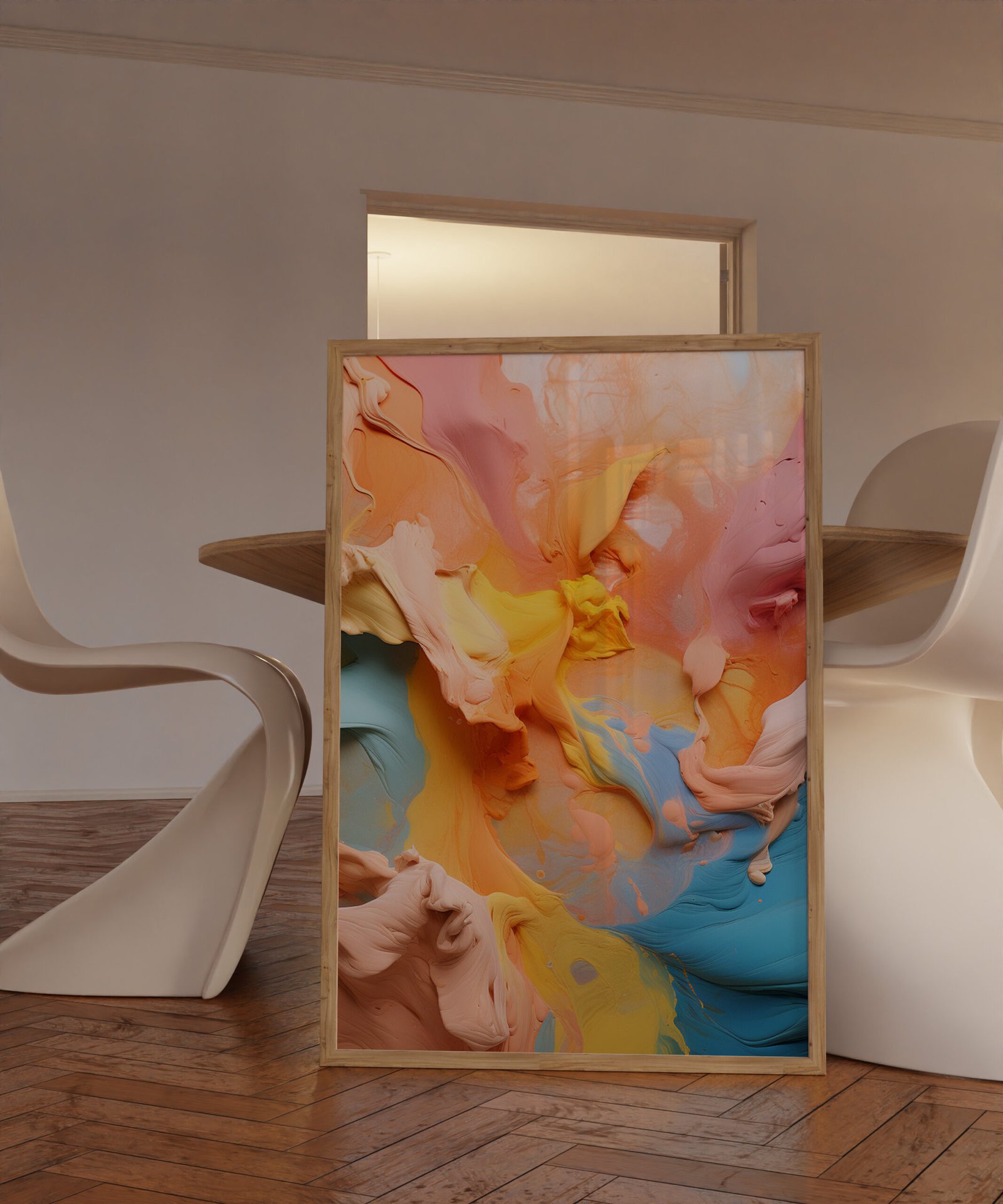 Pasteles is a mesmerizing symphony of vibrant energy, where bright, vivid pastel paint ripples converge to create a visual masterpiece that captures the essence of dynamic motion and color. This captivating piece is a celebration of fluidity and chromatic expression that breathes life into your space.