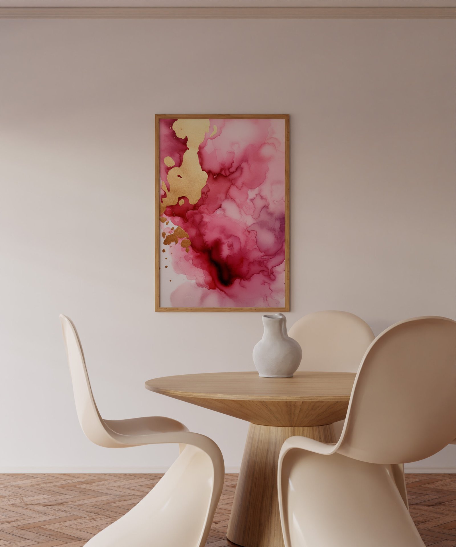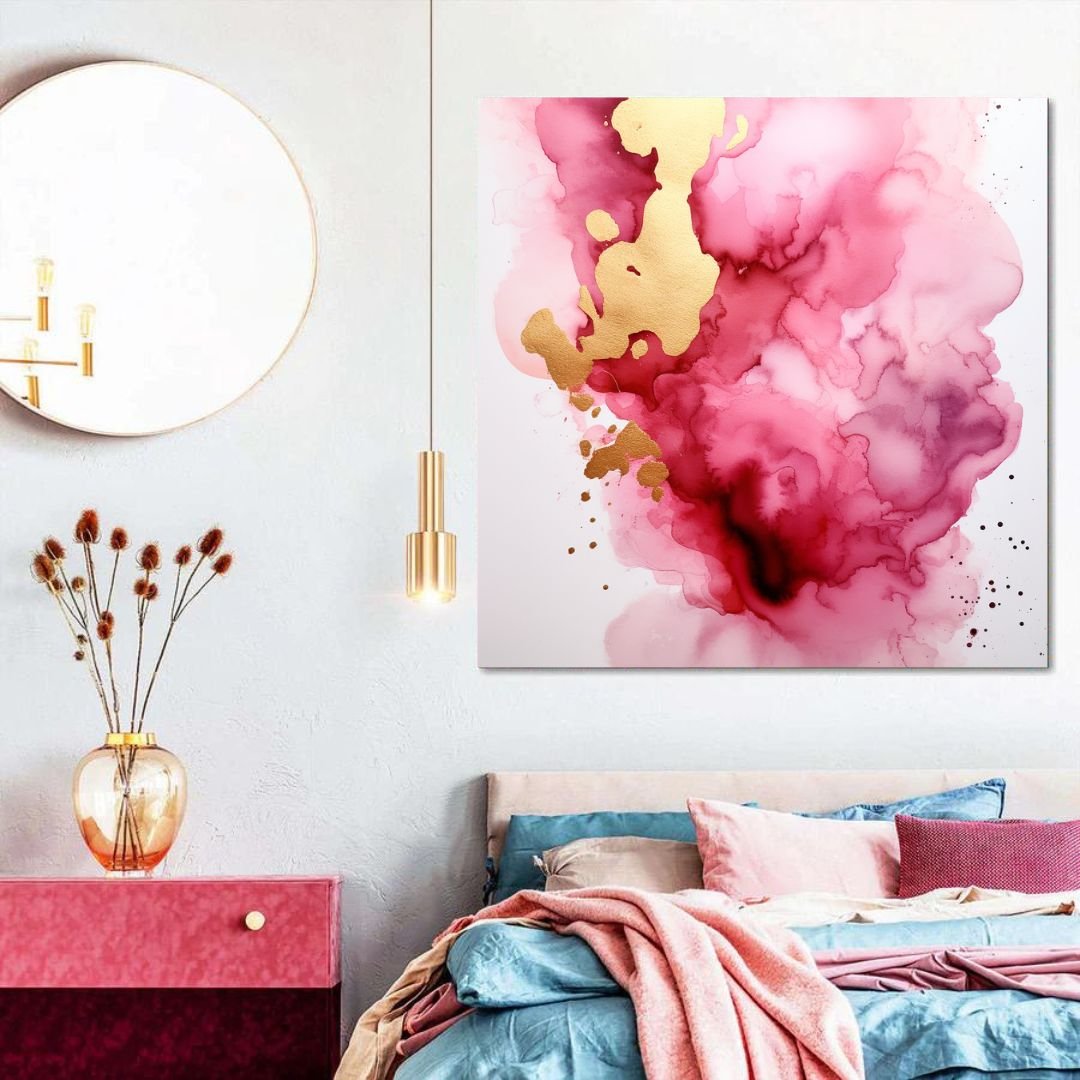 Abstract Pink Ink with Gold Art Prints. Each stroke on these canvases captures the essence of fluid artistry, where vibrant pink hues dance in harmonious chaos, adorned with subtle touches of gold. Elevate your space with a burst of creativity and elegance, as these canvas prints become a captivating focal point in any room.