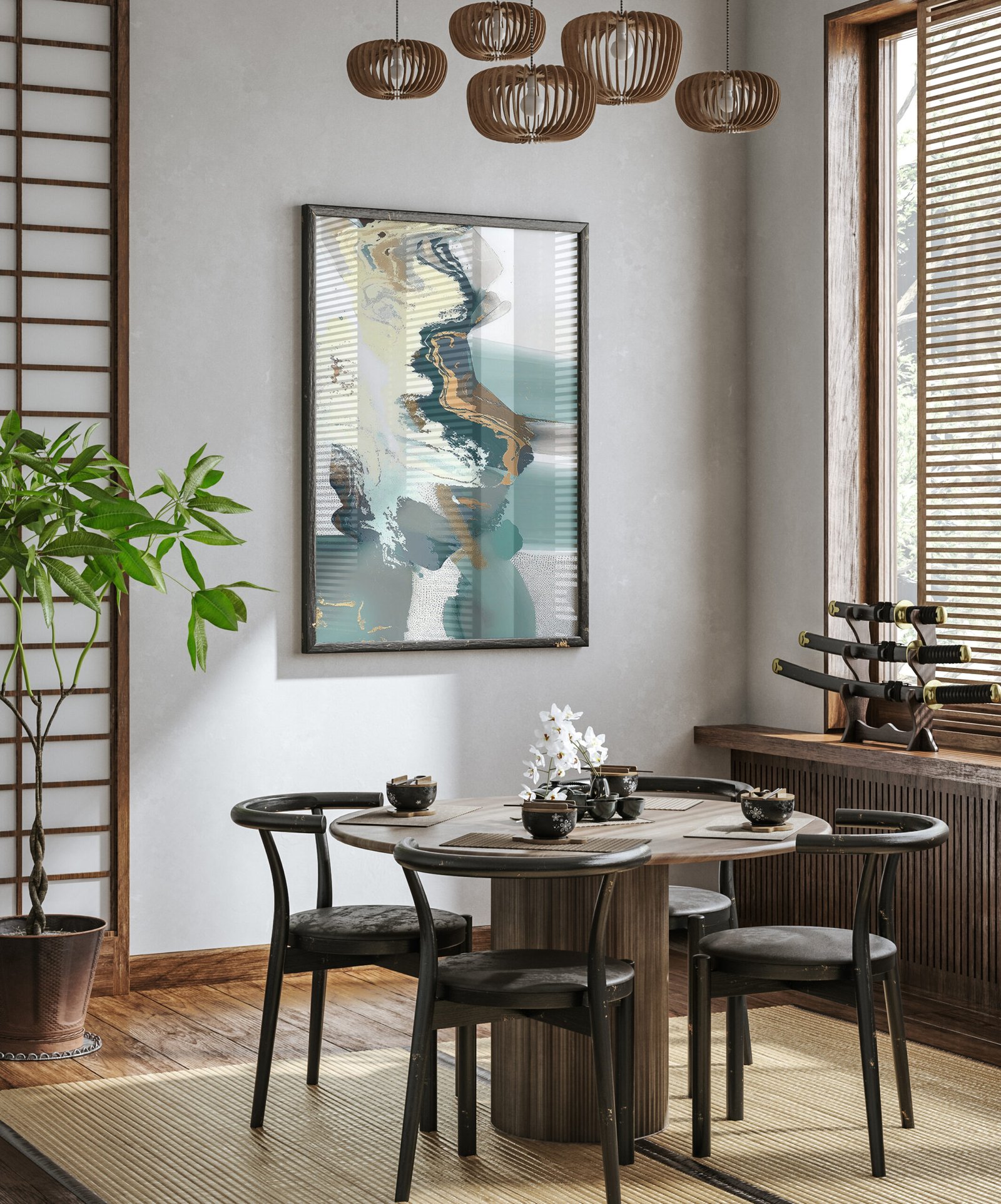 Premium Frames:  Choose from an array of frame colors including Elegant Black, Stunning Gold, Pristine White, and Natural Oak to seamlessly integrate with your decor preferences. Each frame serves as a tasteful accent, complementing the beauty of the curated designs by our favorite artists.