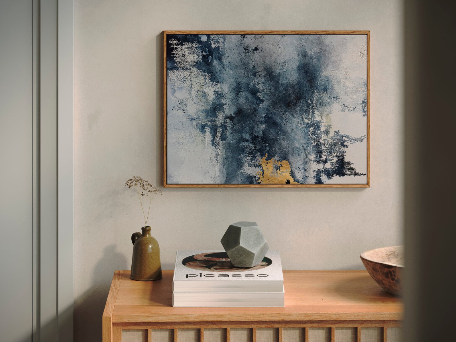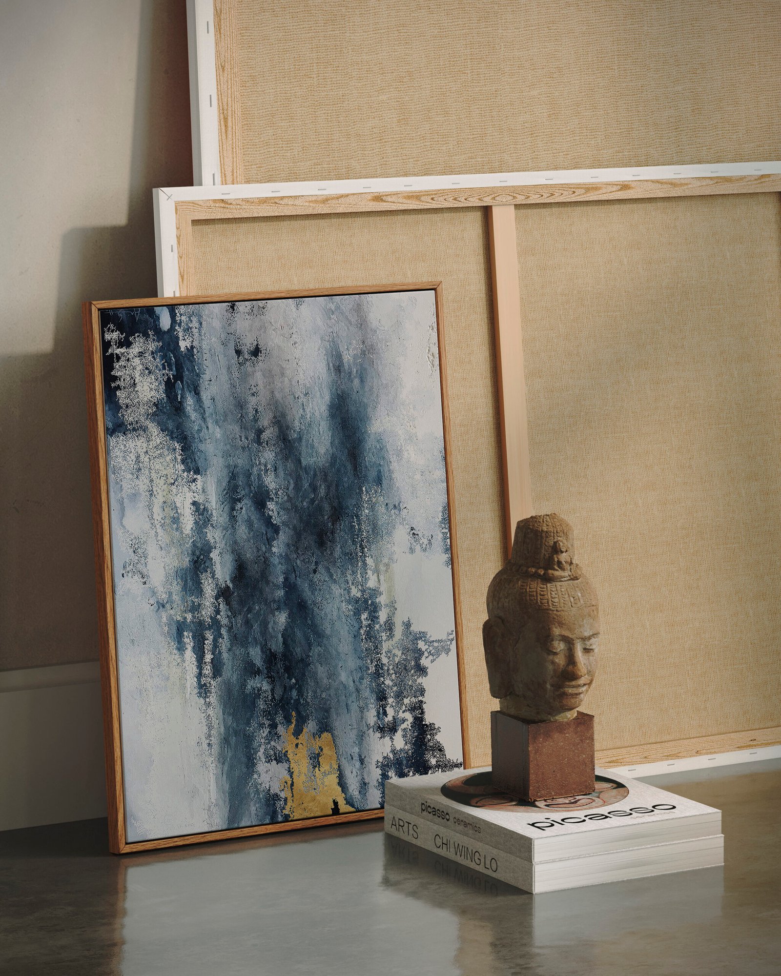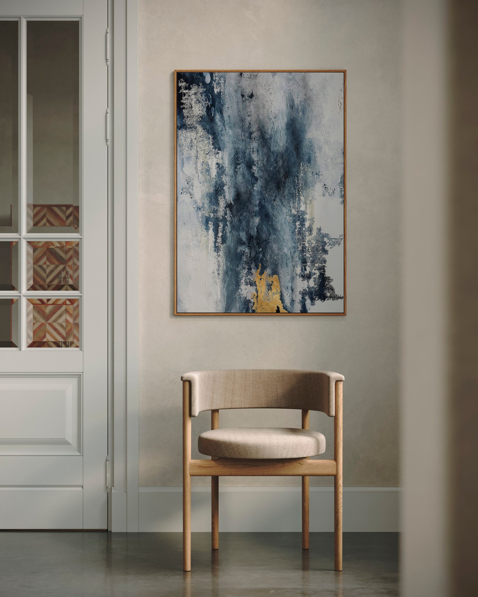 Discover the art of subtlety as framed canvases from the Stone Washed collection become the focal point of aesthetic refinement in your home.