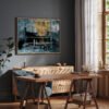 • Find the Perfect Spot Like all fine art, your canvas should be displayed away from direct sunlight and high humidity. This will prevent fading and protect the integrity of the canvas and frame.