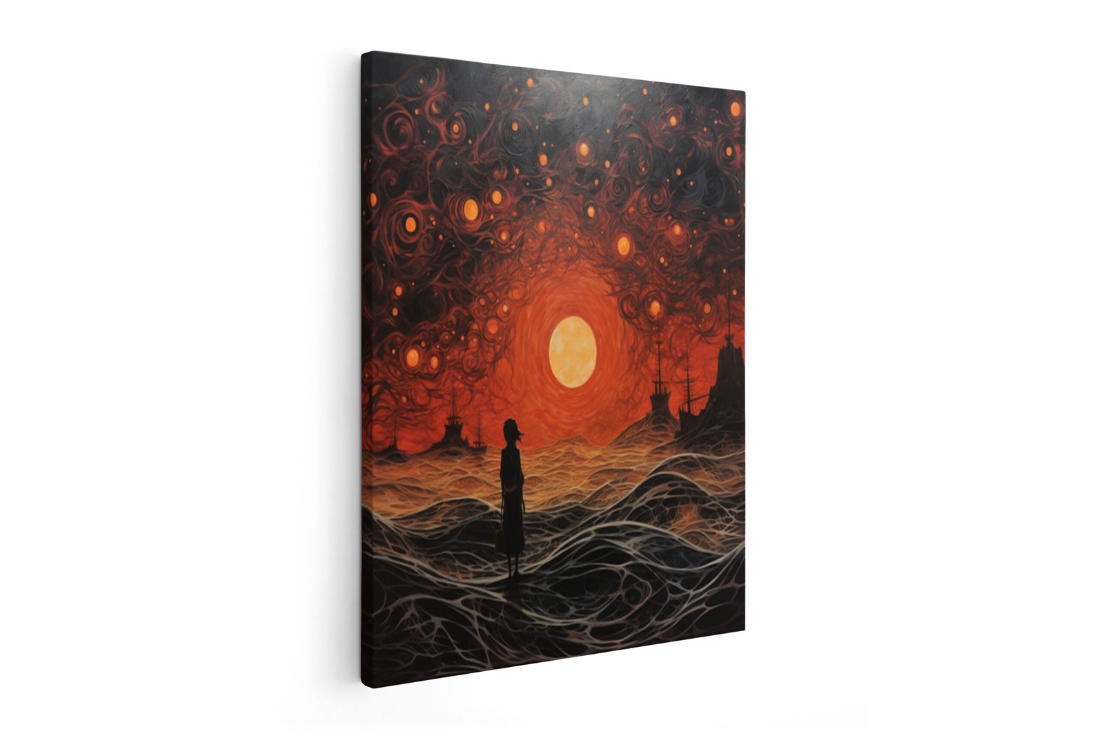 Immerse yourself in the allure of our Walk on Water Canvas Art, where seas of passion collide with the grace of a woman. This collection is a visual journey into the depths of emotion, where the rich red hues of the sea create a captivating backdrop for the enigmatic presence of the woman. Each brushstroke captures the essence of passion, inviting you to lose yourself in the enchantment of this evocative masterpiece.